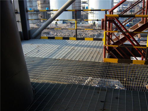 钢格板是将按一定间距的扭绞方刚压入侧力的扁钢内,从而得到焊点牢固,板块状,表面为矩形的格栅板。